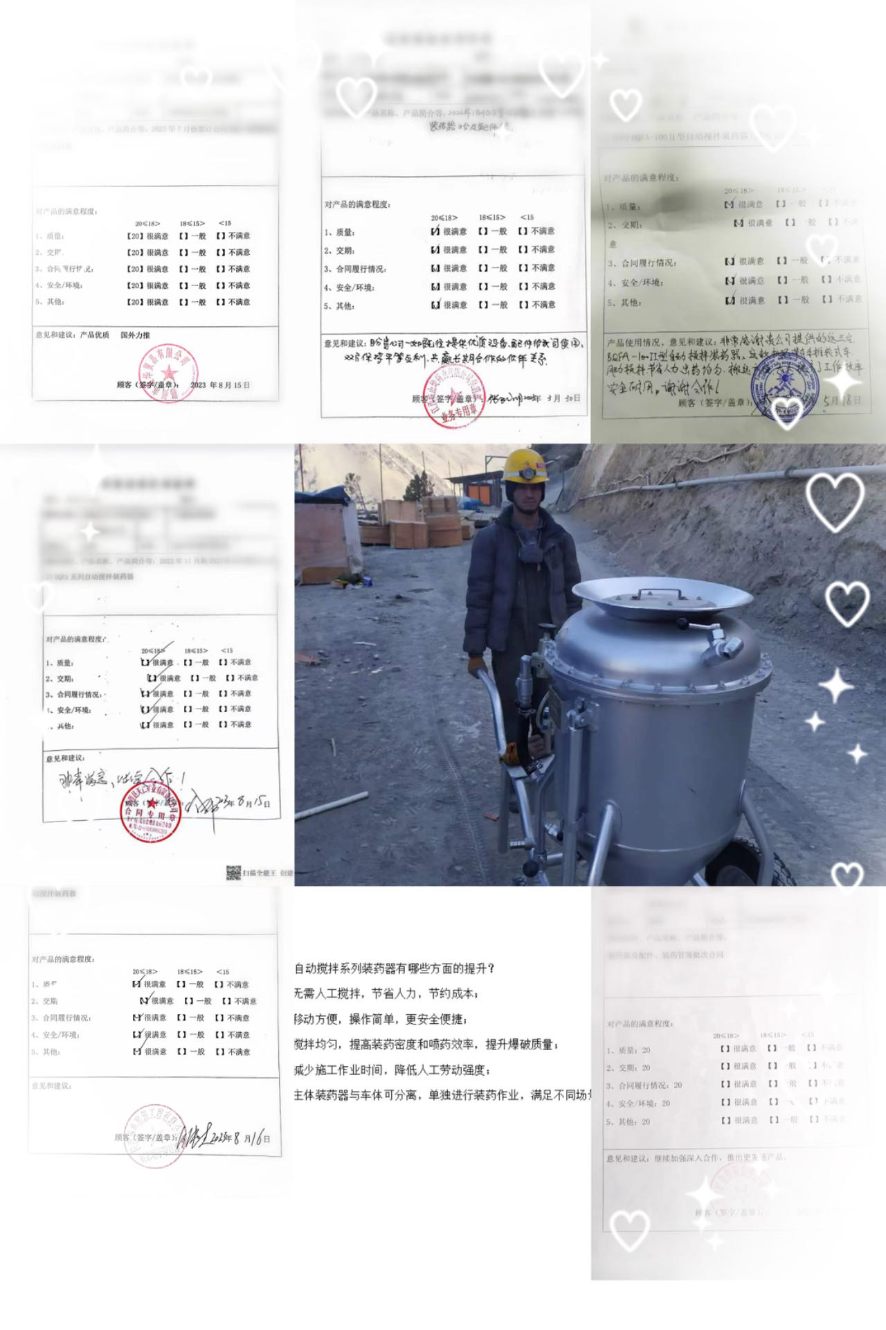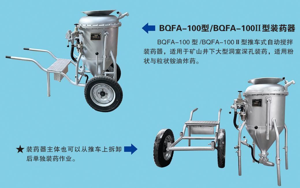BQFA型自動(dòng)攪拌系列裝藥器,與人工攪拌相比,無(wú)需人工攪拌,節省人力且攪拌均勻,移動(dòng)方便,操作簡(jiǎn)單便捷,大大降低人工勞動(dòng)強度,提高裝藥密度、爆破質(zhì)量,減少施工作業(yè)時(shí)間。先后出口塔吉克斯坦、老撾,秘魯,尼日利亞、法國等國家,使用情況反饋中得到一致好評并大力推薦。